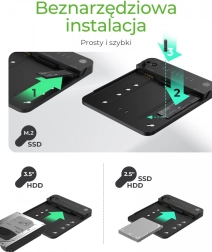 Preprosta namestitev: Dizajn brez orodja z enostavnim vtičnim sistemom omogoča vstavljanje 2,5"/3,5" diskov ali M.2 SSD neposredno v režo.