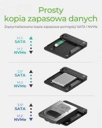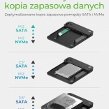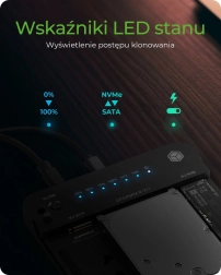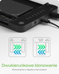 Dvosmerno kloniranje: Z enim pritiskom gumba lahko klonirate med 2,5"/3,5" SATA HDD/SSD in M.2 PCIe NVMe SSD ter ohranite čisto kopijo vseh podatkov in nastavitev.