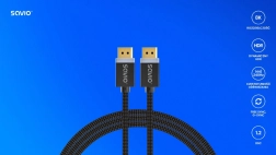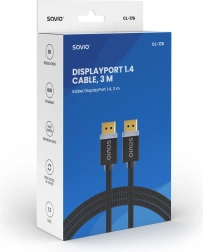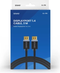 Visokokakovosten kabel DisplayPort 1.4 dolžine 3 m za prenos slike do 8K pri 60 Hz in 4K pri 120 Hz. Podpira tehnologije HDR, DSC 1.2, FEC ter sinhronizaciji FreeSync in G‑SYNC. Odporné pozlačeni konektorji in tekstilni opleten kabel zagotavljajo stabilno povezavo in dolgo življenjsko dobo.