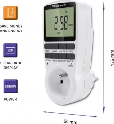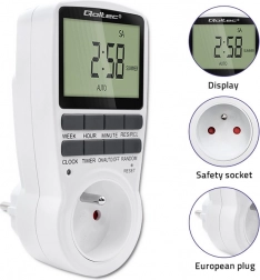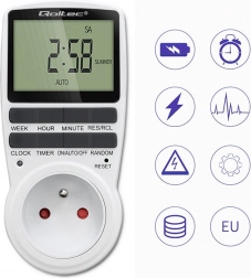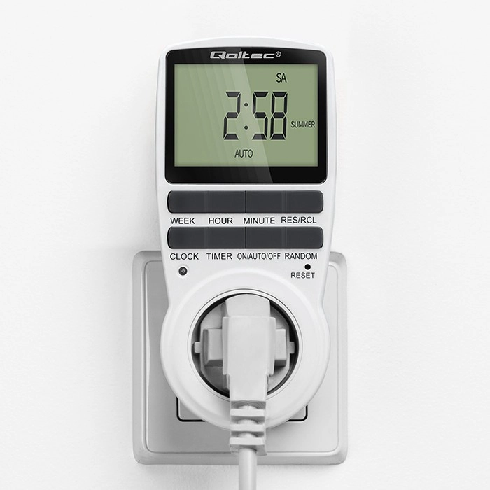 Avtomatizirajte delovanje svetilk, akvarijev, polnilnikov, ventilatorjev ali grelnika vode in zmanjšajte nepotrebno porabo. Zahvaljujoč preglednemu LCD-ju in intuitivnim tipkam zlahka nastavite dan, uro in minuto. Časovnik Qoltec ponuja tudi naključno preklapljanje, ki zvesto simulira prisotnost v stanovanju in poveča varnost.