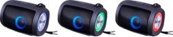 Eleganten valjasti dizajn z izrazitim LED obročem pritegne pozornost in dopolni vzdušje poslušanja. Kompaktno ohišje in pašček zagotavljata, da glasbo vzamete kamor koli.