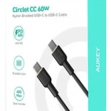 Vzdržljiv kabel Aukey USB‑C ↔ USB‑C dolžine 1,8 m ponuja hitro polnjenje Power Delivery 60 W (3 A, 20 V), hiter prenos podatkov in premijski nylonški oplet za dolgo življenjsko dobo brez zapletanja.