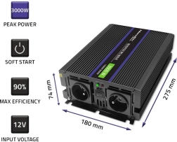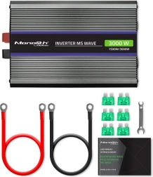 Iščete zanesljiv vir 230 V iz 12 V akumulatorja za kampiranje, avtodom, čoln ali delavnico? Pretvornik napetosti MONOLITH MS Wave z modificirano sinusoidno obliko zagotavlja stabilno moč do 3000 W v vrhu (1500 W neprekinjeno), zato brez težav poganja TV, prenosnik, polnilnike, manjše aparate ali pisarniško opremo. Aluminijasto rebrovanje skrbi za učinkovito hlajenje in dolgo življenjsko dobo.