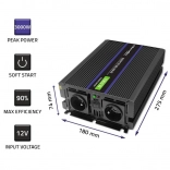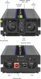 Zahvaljujoč dvema omrežnima vtičnicama, USB priključku in preglednim LED indikatorjem hitro priključite več naprav hkrati. Vgrajene zaščite OVP/UVP/OCP/SCP/OTP ščitijo pretvornik in porabnike pred prenapetostjo, podnapetostjo, nadtokom, kratkim stikom in pregrevanjem. Odlično služi tudi kot nujno napajanje ob izpadu omrežja.