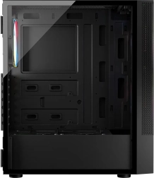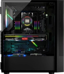 Elegantna ARGB osvetlitev — Spremeni barvo osvetlitve po svojih željah s pomočjo gumba RESET na plošči ohišja. Dodajanjem RGB ventilatorjev dobiš estetski vtis in igralni stil.