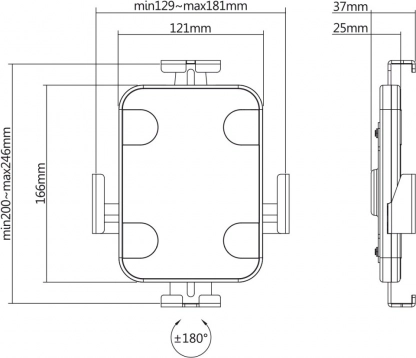 Nastavljive ročice z gumijastimi blazinicami zanesljivo prilagodijo nosilec širokemu naboru tablic in jih ščitijo pred praskami ter zdrsom.