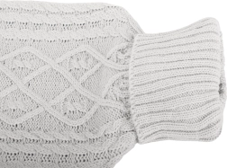 Mehko, pleteno pregrinjalo z vzorcem “puloverja” je prijetno na dotik in ščiti kožo pred previsoko temperaturo površine. Enostavno se sname in očisti, zato termofor ostane higieničen in pripravljen za naslednjo uporabo.