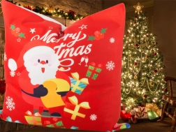 Božični prevlek za blazino z motivom Božička takoj polepša vsak interier. Zaradi na otip prijetnega, mehkega materiala nudi udobje med zimskim poležavanjem, hkrati pa lepo dopolni dekor z girlandami, lučkami in božičnim drevescem.