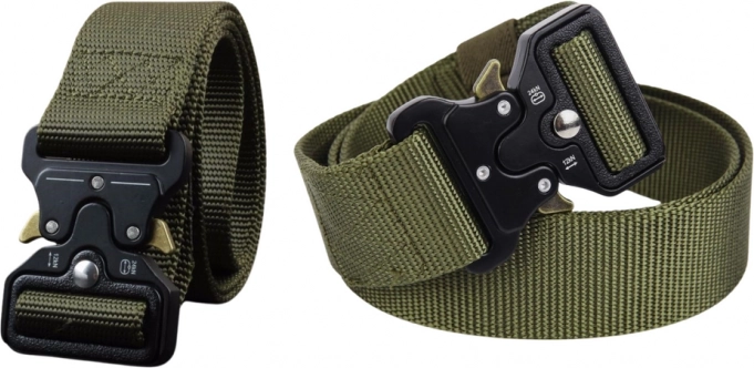 Vzdržljiv taktični pas iz močne najlonske tkanine z kovinsko hitro-spono ponuja tekoče prilagajanje obsega, visoko odpornost proti obrabi in univerzalno uporabo za outdoor, delo in EDC.