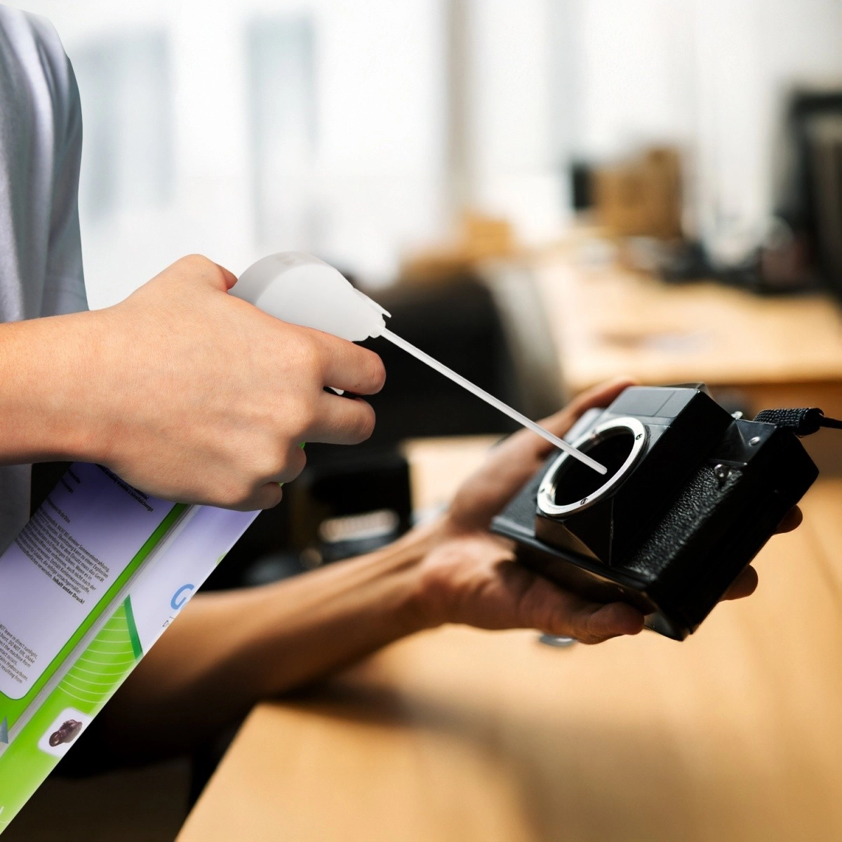 Uporaba je široka: doma, v pisarni, delavnici in servisu. Odlično očisti RTV opremo, ventilatorje, avtomobilske zračne reže, optične in mehanske komponente ter modelarske pripomočke. Čistoča brez nepotrebnega stika in brez tveganja poškodb.