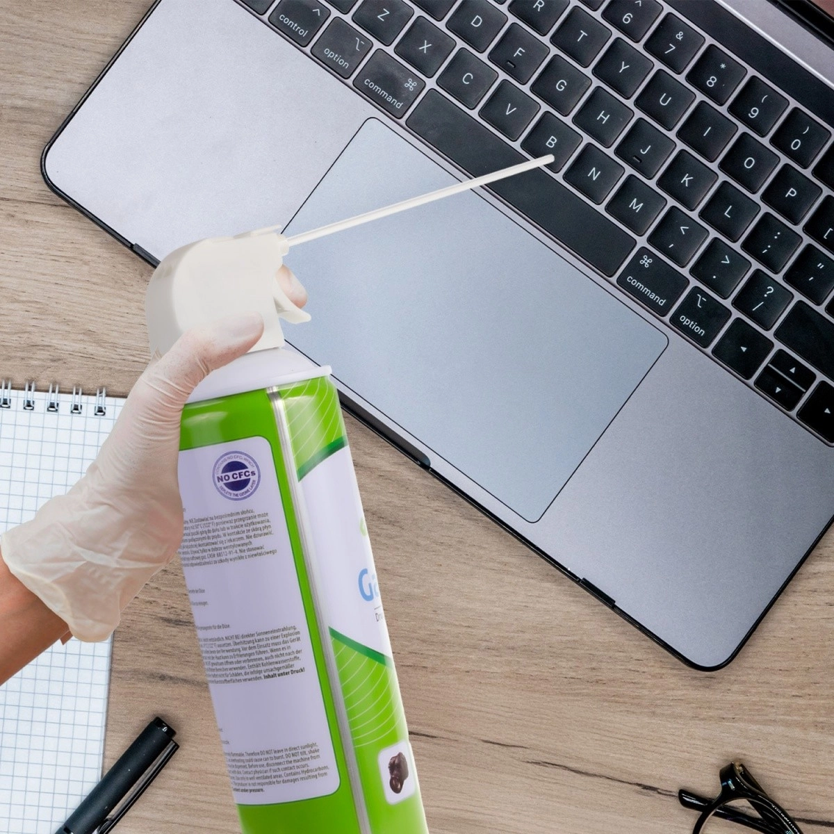 Profesionalni aerosolni pihalni plin s prostornino 600 ml je zasnovan za nežno, a učinkovito odstranjevanje prahu z občutljive elektronike. Pištolni aplikator omogoča udobno upravljanje, kapilarna cevka pa usmeri zračni tok natančno tja, kjer je potreben.