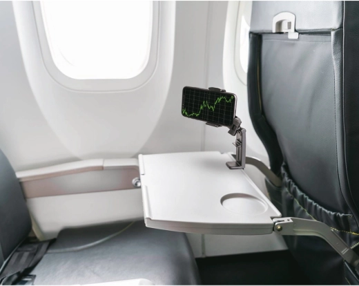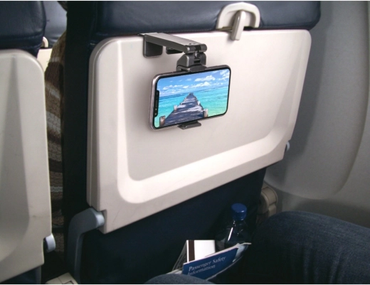 Pritrdite nosilec na pladenj v letalu ali na ročaj kovčka ter udobno uživajte v filmih ali delu med letom ali prestopi.