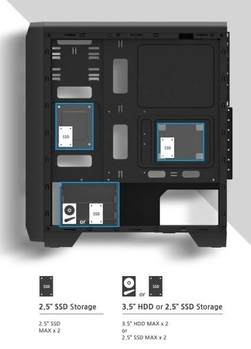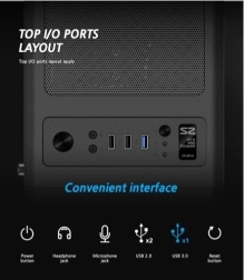 Ne manjkajo niti praktični elementi, kot so zgornji panel s priključki, magnetni prašni filtri ter spodnji prašni filter. Zahvaljujoč posebnemu prostoru za napajalnik je zagotovljeno učinkovito upravljanje prostora in hlajenja.