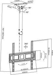 Univerzalni stropni nosilec za televizor MACLEAN MC-943 je idealen za LCD/LED TV in monitorje z diagonalo 32–50 in nosilnostjo do 35 kg. Ponuja nastavitev nagiba, kompatibilnost s standardi VESA 50x50 do 400x400 in je odlična izbira za dom in poslovne prostore – restavracije, hotele, trgovine ali letališča. V paketu je celoten komplet vijakov in slovenska navodila za montažo.