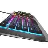 Impresivna RGB osvetlitev z 11 načini omogoča spreminjanje hitrosti in intenzivnosti učinkov. V uporabniškem načinu izberete enega od 8 vnaprej nastavljenih RGB barvnih tonov za 7 neodvisnih con in tipkovnico uskladite z vašo igralno postavitvijo. Stabilnost zagotavljajo gumijaste proti zdrsu podloge in zložljive nogice za idealen kot tipkanja.