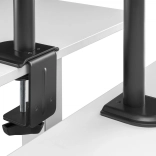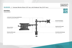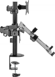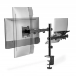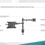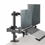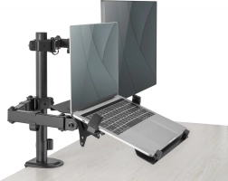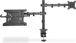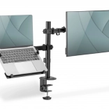 Nosilec omogoča individualno, prostorsko varčno in ergonomsko namestitev monitorja z diagonalo do 32''/9 kg ter prenosnika z diagonalo do 15,6''/4 kg. Podpira VESA nosilec. Nosilec ponuja dve možnosti montaže: namizna objemka in prehodna pritrditev sta priloženi. Zahvaljujoč hitremu zapenjanju je mogoče ploščo VESA pri montaži/demontaži pritrditi ali odpeti s pomočjo vijaka. Z integriranim vodenjem kablov je delovno mesto urejeno.