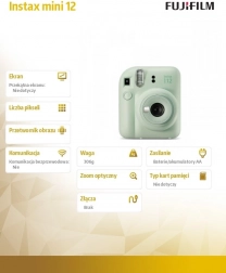 INSTAX Mini 12 prinaša veselje analognega fotografiranja v igrivi in sodobni zasnovi. Enostavno upravljanje – zavrtite, namerite in posnemite – in v hipu držite svojo takojšnjo fotografijo v velikosti kreditne kartice v roki. Zahvaljujoč samodejni bliskavici in pametni osvetlitvi dobite lepo osvetljene posnetke doma in na prostem.
