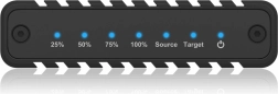 Popolnoma aluminijasta zgradba z rebrastim hladilnikom in toplotno prevodnimi podlogami na pokrovu učinkovito odvaja toploto tudi pri dolgotrajni obremenitvi. Poleg kombiniranega kabla USB‑C/USB‑A je za zahtevnejše SSD mogoče priključiti tudi dodatno napajanje prek USB‑C (adapter ni priložen).