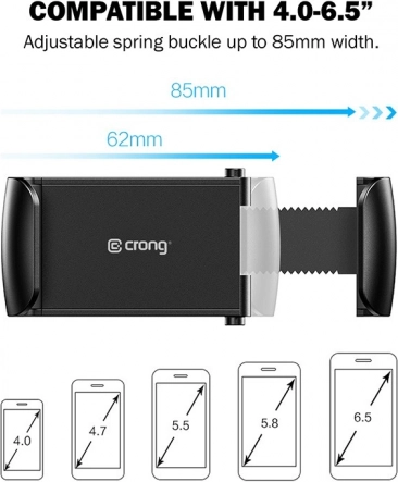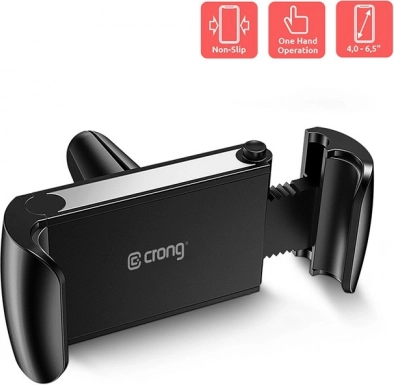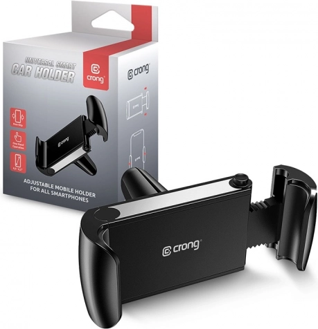 Praktičen nosilec za avto za telefone od 4 do 6,5 palca z namestitvijo v rešetko zračnika. Zahvaljujoč raztegljivim čeljustim do 85 mm, močnemu vzmetnemu mehanizmu in protidrsečim silikonskim vložkom telefon varno drži tudi na neravninah. Gumirana površina oprijema ščiti rešetko pred poškodbami, vrtljiva glava pa omogoča optimalno nastavitev.