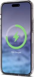 Eleganten in zaščitni prozoren ovitek za iPhone 15 Pro Max je opremljen z vgrajenim magnetnim obročem, ki omogoča enostavno in varno povezavo z MagSafe dodatki, kot so polnilniki in avtomobilski nosilci. Ovitek zagotavlja močan oprijem in pravilno delovanje združljivih dodatkov.