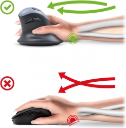 Navpična miška YENKEE ErgoSnug je zasnovana za podporo ergonomskemu, naravnemu položaju dlani in zmanjšanje obračanja podlakti. Tako zmanjšuje pritisk na ključne živce v zapestju ter pomaga zmanjšati tveganje za sindrom karpalnega kanala (CTS) pri vsakodnevnem delu z računalnikom.