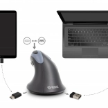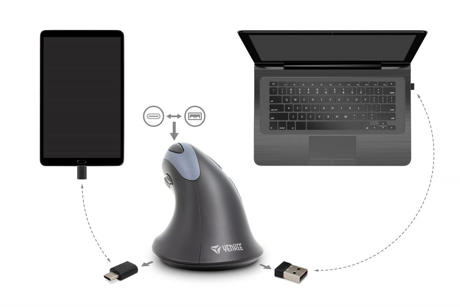 Razbremenite svoje zapestje z navpično miško YENKEE ErgoSnug. Zasnovana je za naraven položaj roke, manjšo obremenitev živcev in preprečevanje sindroma karpalnega kanala. Ponuja 6 gumbov, občutljiv optični senzor do 1600 DPI ter udobno brezžično delovanje 2,4 GHz z nano sprejemnikom in USB‑C adapterjem.