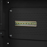 V kompletu je DIN letev za montažo opreme in dodatkov, sidrni vijaki in ozemljitveni kabli za zagotavljanje stabilnosti in varnosti.