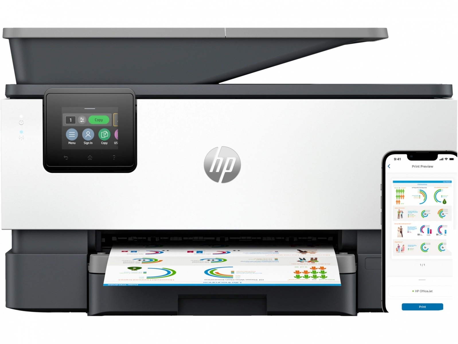 HP OfficeJet Pro 9125e je zmogljiva večfunkcijska naprava, zasnovana za učinkovito delo v pisarni. Združuje tiskalnik, skener, kopirni stroj in faks, kar uporabnikom omogoča opravljanje različnih nalog brez potrebe po dodatnih napravah.