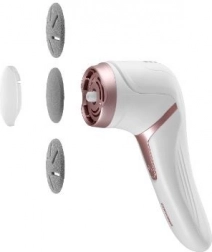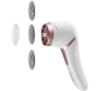 Električni pilnik za pete Concept PN3000 je priložen s 3 zamenljivimi blazinicami za različne vrste nege. Nežna blazinica je primerna za občutljive dele, srednja je idealna za vsakodnevno uporabo, groba pa za suho in odebeljeno kožo. Odprtine v nastavkih služijo za sesanje odluščenih delcev kože.