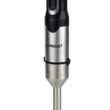 Ročni mešalnik PRIME3 je vsestranski pomočnik za vsakodnevno kuhanje. Močan in hkrati tih enosmerni (DC) motor z močjo 1200 W skupaj s štirikrakim nerjavečim rezilom zagotavlja gladke kreme, fine smoothieje in hitro pire. Neprekinjena regulacija hitrosti v kombinaciji z gumbom turbo nudi popoln nadzor nad rezultatom.