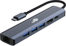 HUB USB-C adapter 6v1 - HDMI, 3x USB, PD, RJ-45