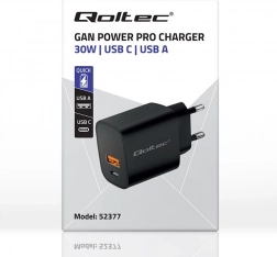 Polnilec Qoltec GaN Power Pro uporablja napredno tehnologijo GaN, kar pomeni zelo učinkovito in hitro polnjenje ob nižji porabi energije. Zahvaljujoč zmožnosti prilagajanja različnim vrstam naprav ščiti baterije in preprečuje pregrevanje.