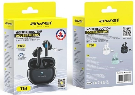 Uživajte v svobodi brez kablov s TWS Awei T61. Zahvaljujoč Bluetooth 5.3 je prenos zvoka stabilen in kakovosten do razdalje približno 10 metrov. Lahka in kompaktna zasnova je primerna za delo, šport in potovanja, medtem ko ergonomsko oblikovani silikonski čepki zagotavljajo udobje brez neprijetnega pritiska.