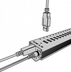 Zahvaljujoč močnemu zunanjemu napajanju 96 W lahko razdelilnik hkrati napaja več perifernih naprav – od diskovnih ohišij in kamer do tipkovnic in donglov. Dva montažna nosilca omogočata trdno namestitev na mizo, v rack ali pod pult. Priključite in deluje takoj – Plug & Play brez gonilnikov, široka združljivost z Windows, macOS in ChromeOS.