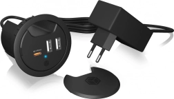 Vgradnja je izjemno preprosta: le vstavite jo v standardno odprtino 60 mm brez uporabe orodja. Za plošče z odprtino 80 mm lahko uporabite vmesni obroč IB-HUBA001. Priložen je tudi zaščitni pokrovček, ki ščiti konektorje pred prahom in nečistočami ter poravna površino mize, ko se trenutno ne polni.