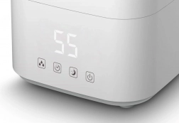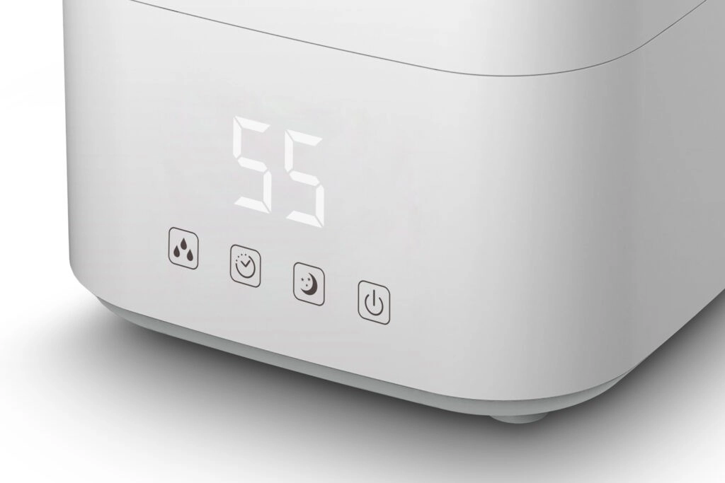 Intuitivna LED-plošča na dotik omogoča upravljanje količine ustvarjene megle in vas obvešča o stopnji vlaženja. Štirilitrski rezervoar za vodo s priročnim sistemom zgornjega polnjenja je zelo enostaven za čiščenje in uporabo. Zamenljiv ionsko-izmenjevalni (smolni) filter mehča vodo in zmanjšuje nastanek oblog.