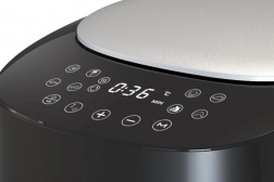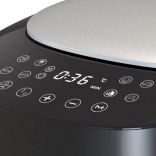 Model s prostornino 3,7 l brez težav pripravi porcije za vso družino. Temperaturno območje 60–220 °C je idealno za pogrevanje, vzdrževanje toplote in hitro peko. Poseben odvod pare pomaga ohraniti hrustljavo skorjico in sočno notranjost, hkrati pa občutno zmanjšuje neželene vonjave, značilne za klasično cvrtje.