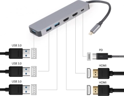 Adapter USB-C Razdelilnik USB-C PD HDMI x2 USB 3.0x3