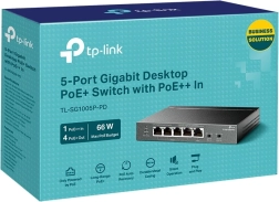 5 vrat RJ45 s hitrostjo 10/100/1000 Mb/s zagotavlja zadostno širino pasu za povezavo več naprav. Podpora PoE++ in PoE+ omogoča napajanje naprav do 66 W, kar je idealno za raznolike aplikacije.