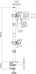 Univerzalni namizni nosilec omogoča montažo dveh monitorjev navpično enega nad drugim, primeren za zaslone do 32 palcev in največ 8 kg.
