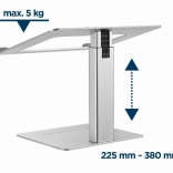 Ergonomsko stojalo za prenosnike do velikosti 15,6 palca z nastavljivo višino za udobnejše delo. Elegantna srebrna konstrukcija iz kakovostnega aluminija zagotavlja stabilnost in varnost.