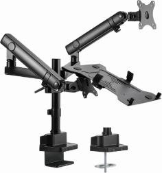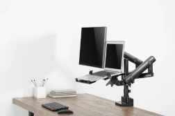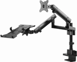 Ergonomski in prilagodljiv nosilec za monitor in prenosnik, ki poskrbi za idealno ureditev vaše pisalne mize in poveča vašo produktivnost.
