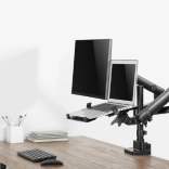 Omogoča enostavno pozicioniranje monitorja in prenosnika, kar pomaga zmanjšati fizično obremenitev in povečuje delovno udobje.