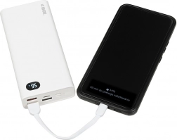 Uživajte svobodo brez vtičnice. Ta kompaktna in vzdržljiva powerbanka z veliko kapaciteto 20.000 mAh zanesljivo napolni vaš telefon, tablico in slušalke. Zahvaljujoč podpori hitrega polnjenja Power Delivery (PD) in Quick Charge (QC) boste energijo dopolnili res hitro, in sicer prek univerzalnih vrat USB‑C in USB‑A. Pregleden LCD‑zaslon natančno prikaže preostalo kapaciteto, zato vedno veste, kdaj je čas za polnjenje.