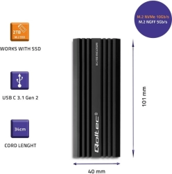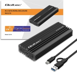 Ohišje za M.2 SSD znamke Qoltec je zasnovano za visoko združljivost z različnimi tipi SSD, vključno z NVMe in SATA. Namenjeno je diskom z M-Key in B+M-Key velikosti 2230, 2242, 2260 in 2280.