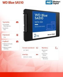 WD Blue SA510 je sodoben SATA SSD, zasnovan za ustvarjalce, profesionalce in zahtevne uporabnike, ki želijo pospešiti zagon sistema, delo s projekti in vsakodnevno produktivnost. Z bralno hitrostjo do 560 MB/s in nizko latenco občutno pospeši nalaganje aplikacij in delo z velikimi datotekami. Nizka poraba energije podaljša avtonomijo prenosnika med polnjenji, delovanje brez mehanskih delov pa odpravlja vibracije in zmanjšuje tveganje za izgubo podatkov ob padcu.