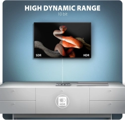 - HDR (10‑bit), Hot‑Plug‑Detect, TMDS, HDCP 1.4/2.3; 2‑kanalni zvok do 48 kHz/24‑bit glede na vir/končno napravo