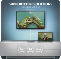 - Zmogljiv video: 4K/60 Hz, 2K/120 Hz, Full HD/240 Hz, HDR, HDCP 1.4/2.3 (zahteva USB‑C z DP Alt Mode 1.4+ ali Thunderbolt 3/4).