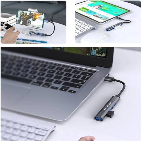 Razširite povezljivost svoje naprave in hkrati priključite več dodatkov – miško, tipkovnico, tiskalnik, USB ključ ali brezžične dongle. USB‑C hub 4v1 ponuja praktično razporeditev vrat, je lahek in prenosljiv ter brez težav gre v žep ali nahrbtnik. Robusten aluminijast dizajn poveča vzdržljivost in pomaga pri odvajanju toplote.
