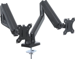 Dvojni nosilec za monitorje ART UM-116 je zasnovan za monitorje z diagonalo od 13 do 32 palcev in težo od 2 do 9 kg. Zahvaljujoč plinski vzmeti lahko položaj monitorjev prilagodite preprosto z enim prstom, pri čemer nosilec ostane trdno na mestu tudi pri vrtenju zaslona zaradi funkcije PIVOT z možnostjo vrtenja za 360 stopinj.